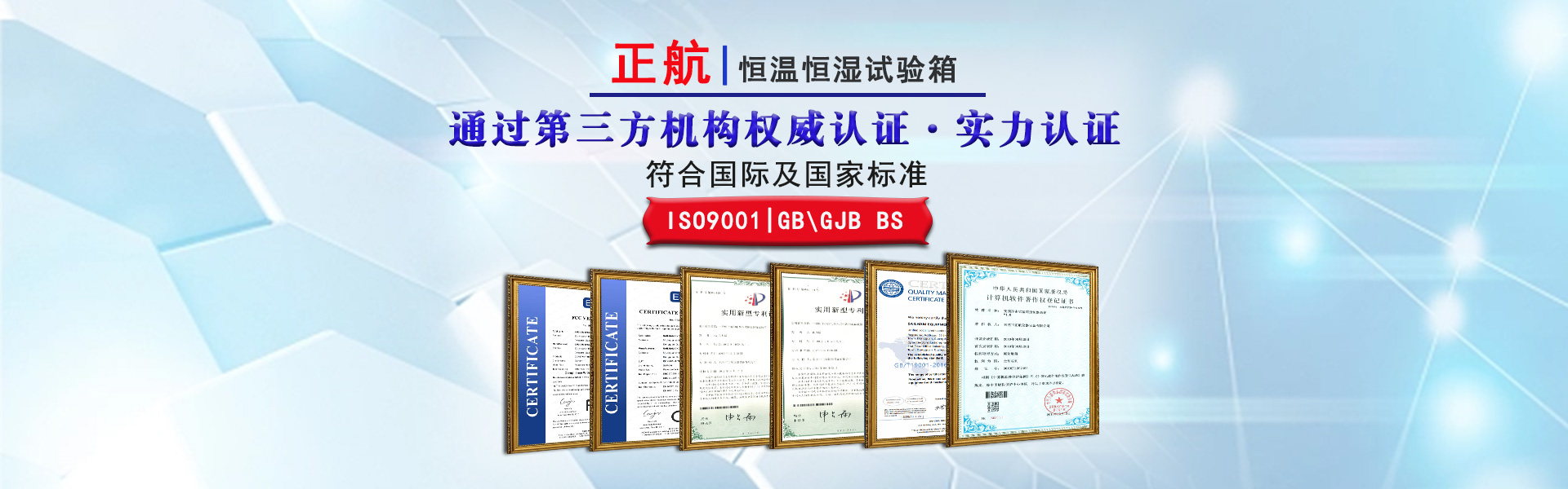 榮獲國家高新技術企業、廣東優質制造商、守合同重信用企業等榮譽、CNAS認證企業(第三方檢測權威機構)及30+項專利證書,并通過lSO9001:2015質量體系認證、CE、SGS認證滿足GB、GJB、IEC、MIL-STD等試驗標準要求。